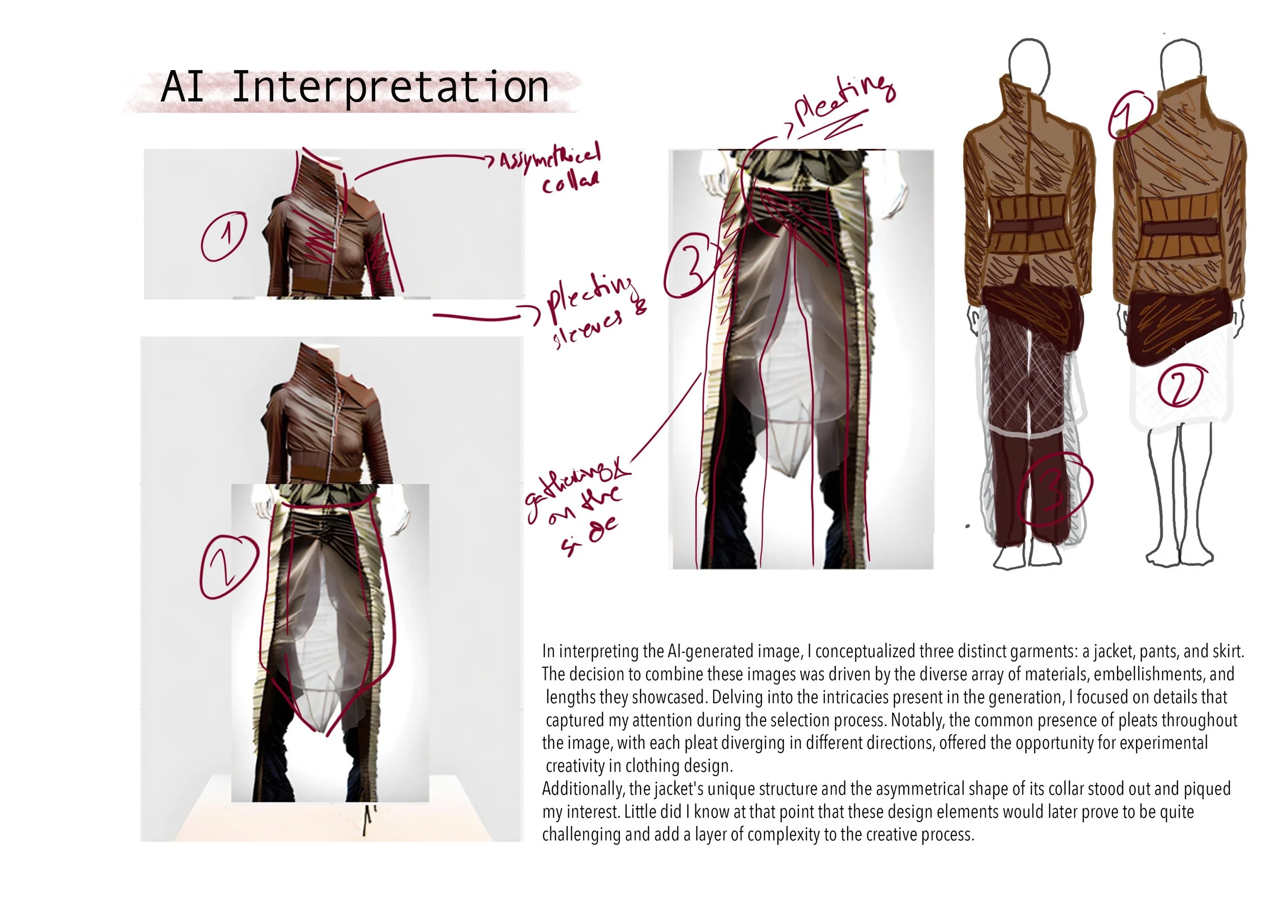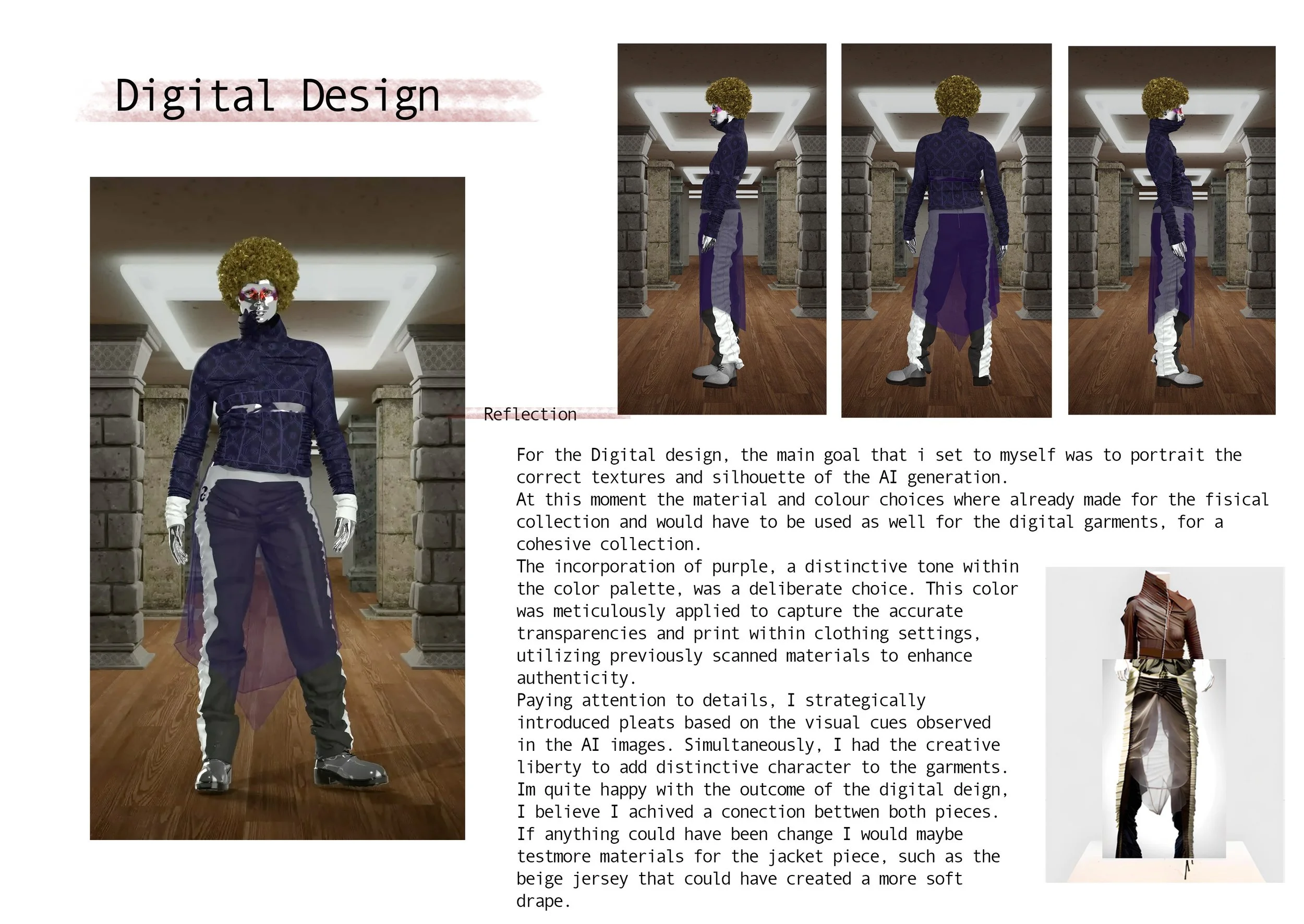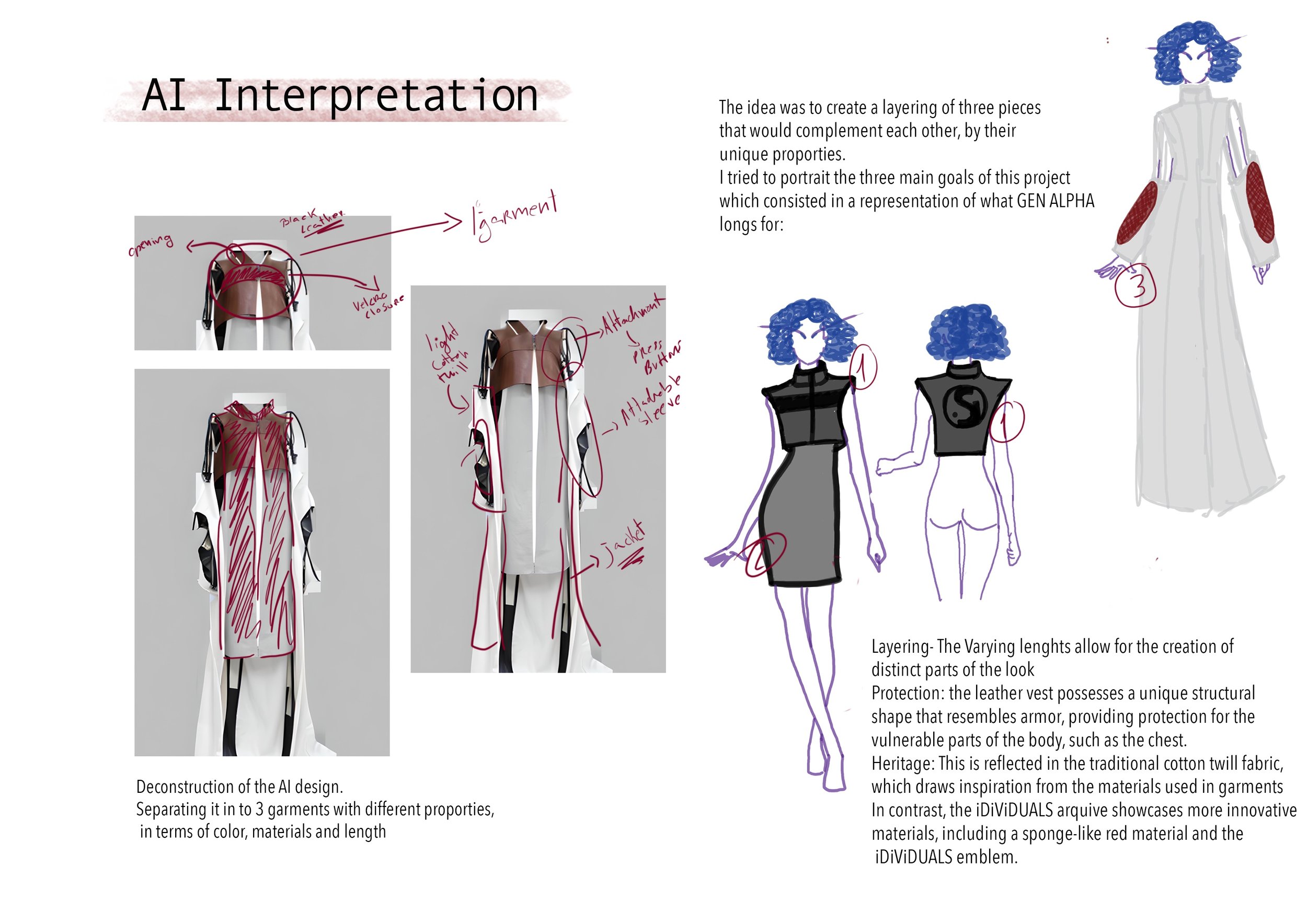 This vision is represented in a phygital collection generated in collaboration with AI (AI as a tool and also a representation of the largest archive currently existing) and iNDiViDUALS (as a studio, communicating through a fashion collection).