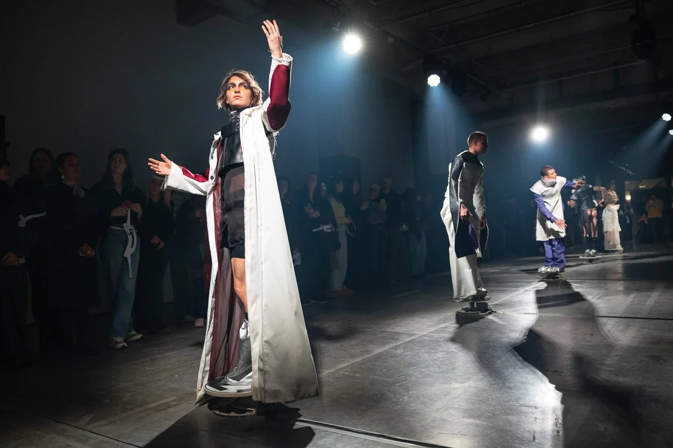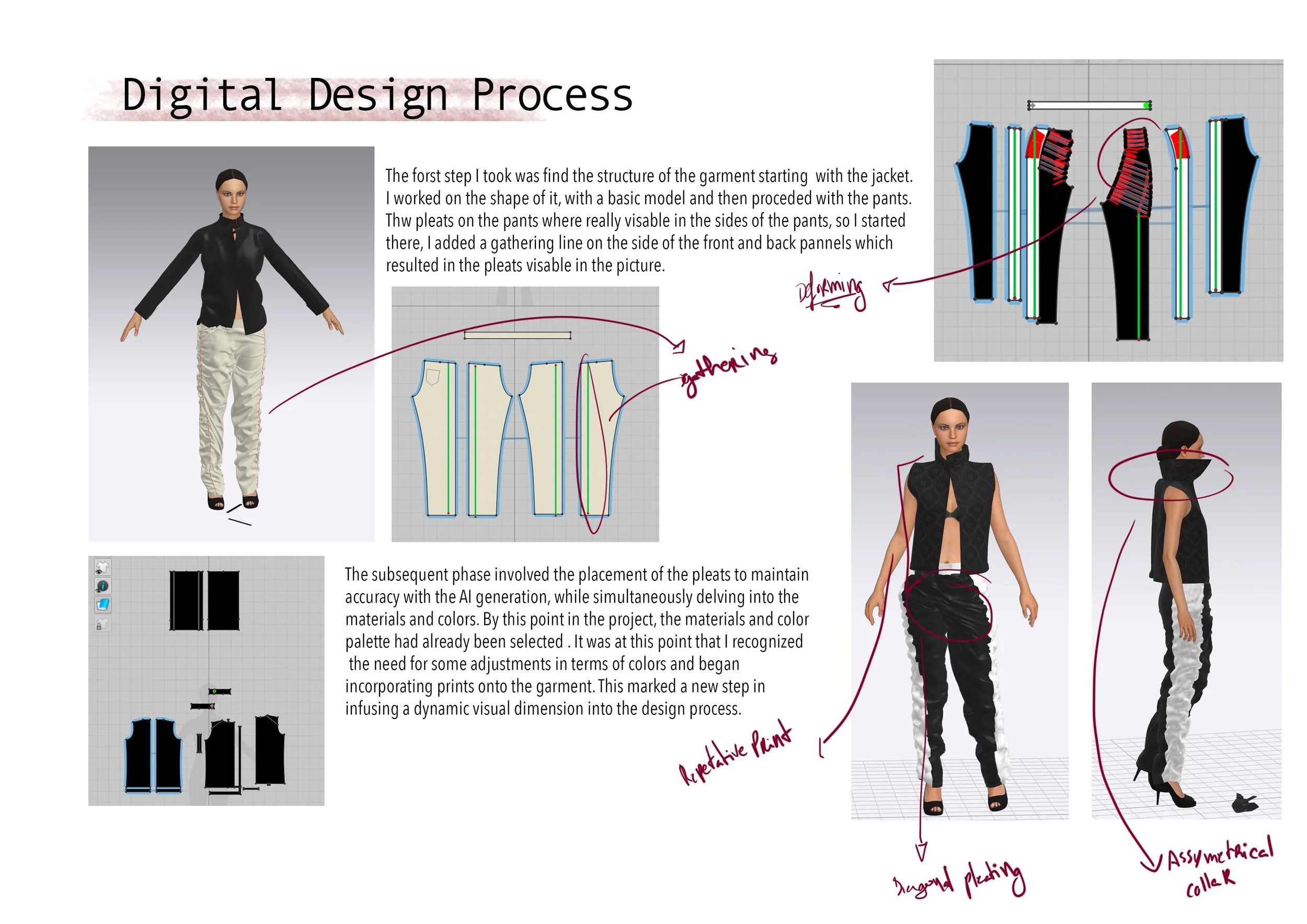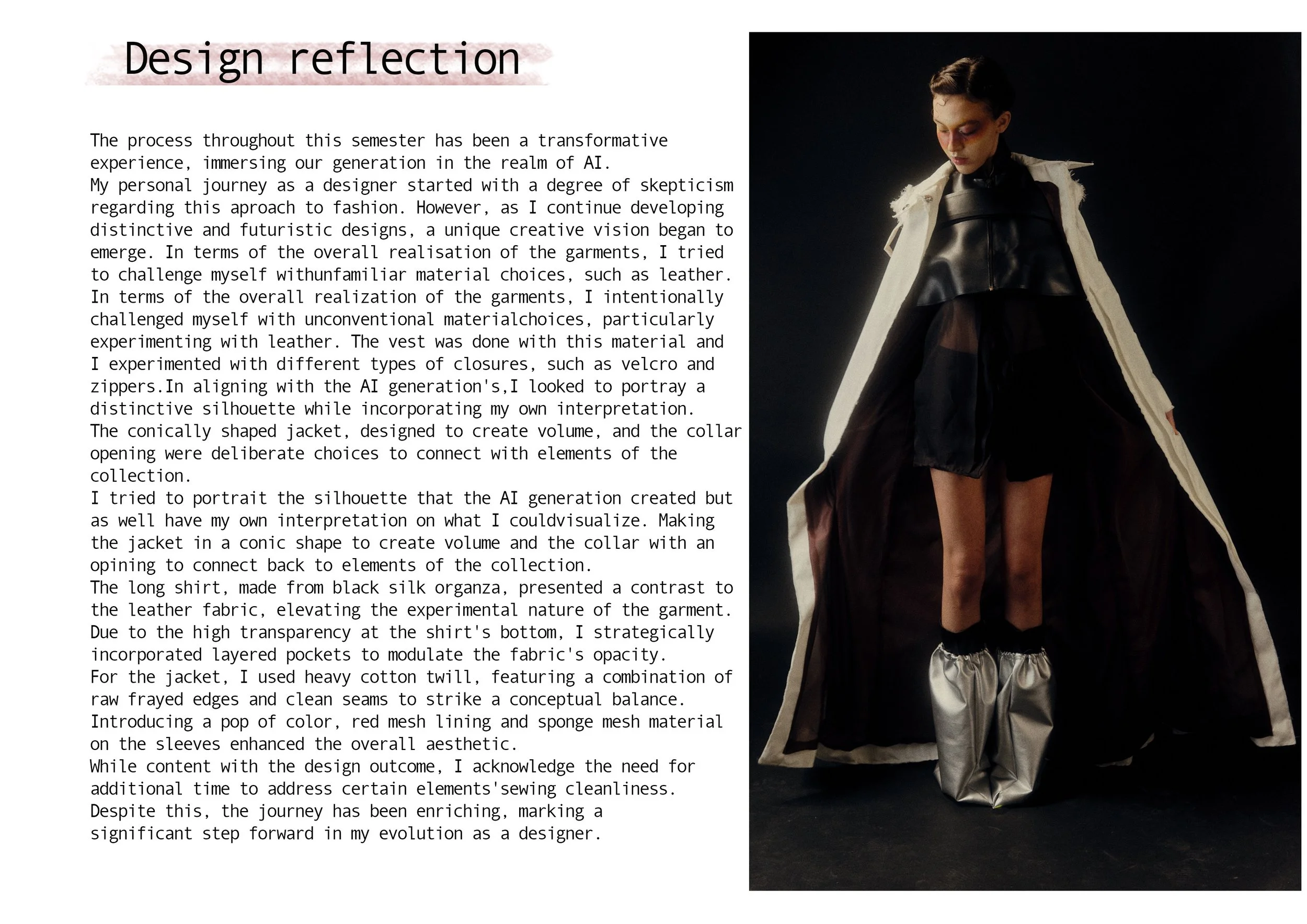 This vision is represented in a phygital collection generated in collaboration with AI (AI as a tool and also a representation of the largest archive currently existing) and iNDiViDUALS (as a studio, communicating through a fashion collection).
