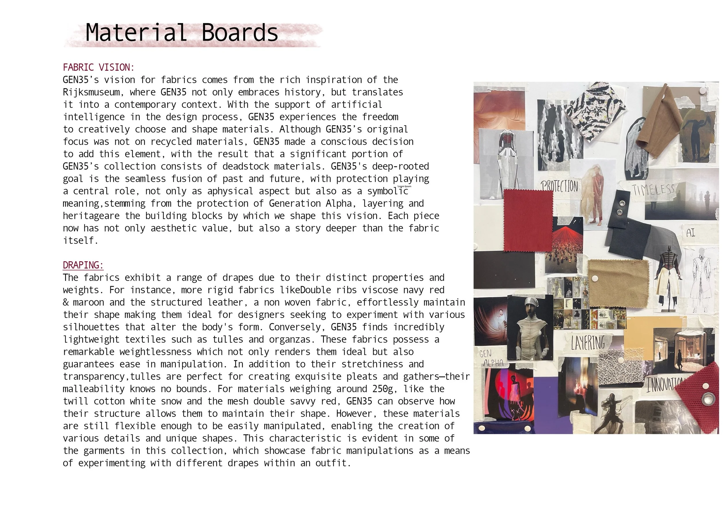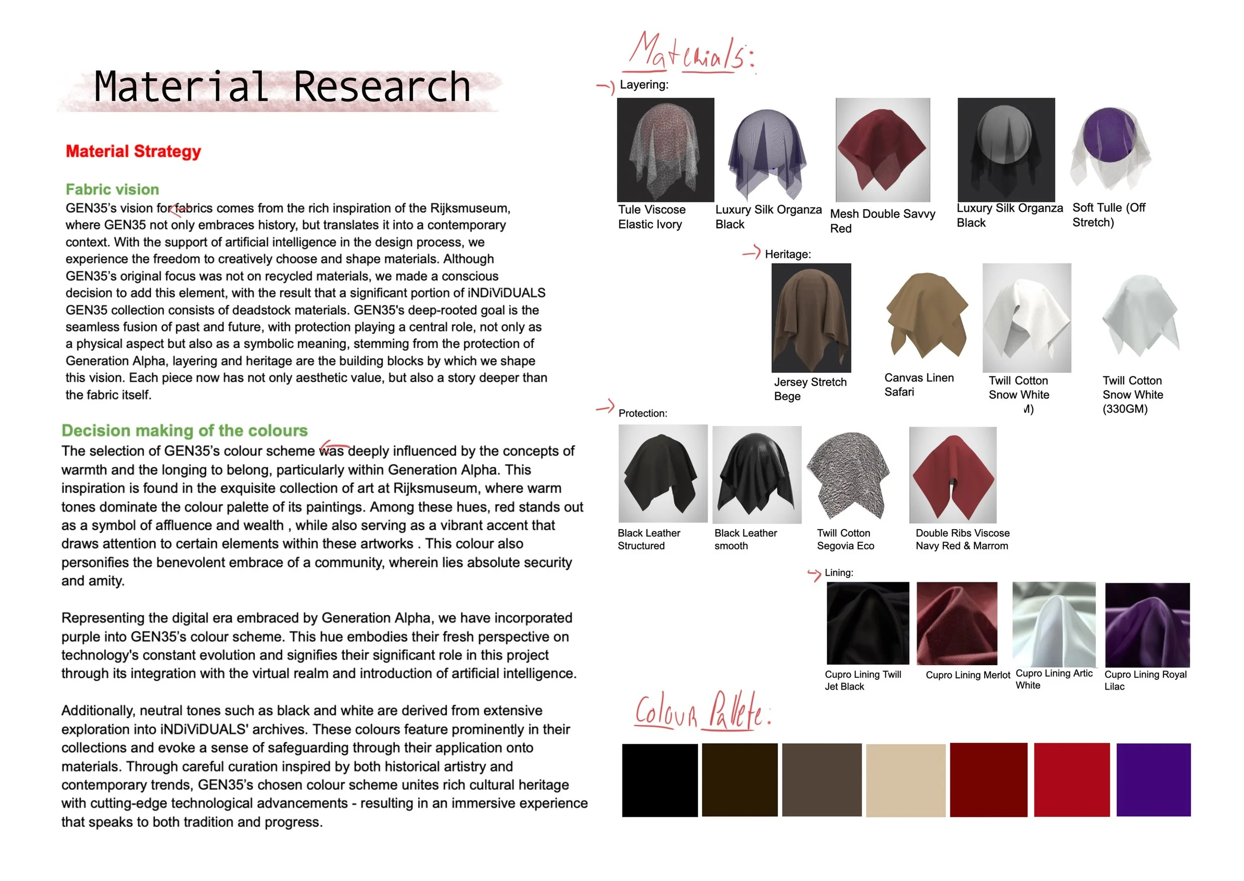 Archive - bridging past, present and future for the enduring power of our collective culture iNDiViDUALS reflects on the importance of “archiving”, connecting generations and nurturing a sense of identity and belonging to the past, present and future. Using ‘Archives’ as a bridge and a source of inspiration to create collective culture. GEN35 is dedicated to creating an innovative vision of the Rijksmuseum audience, 2030. We will use fashion as a communication tool to forecast a scenario for Generation Alpha in an immersive museum experience. Providing a vision for “the museum of the future”. What we will create will build upon existing pieces, artworks and spaces.